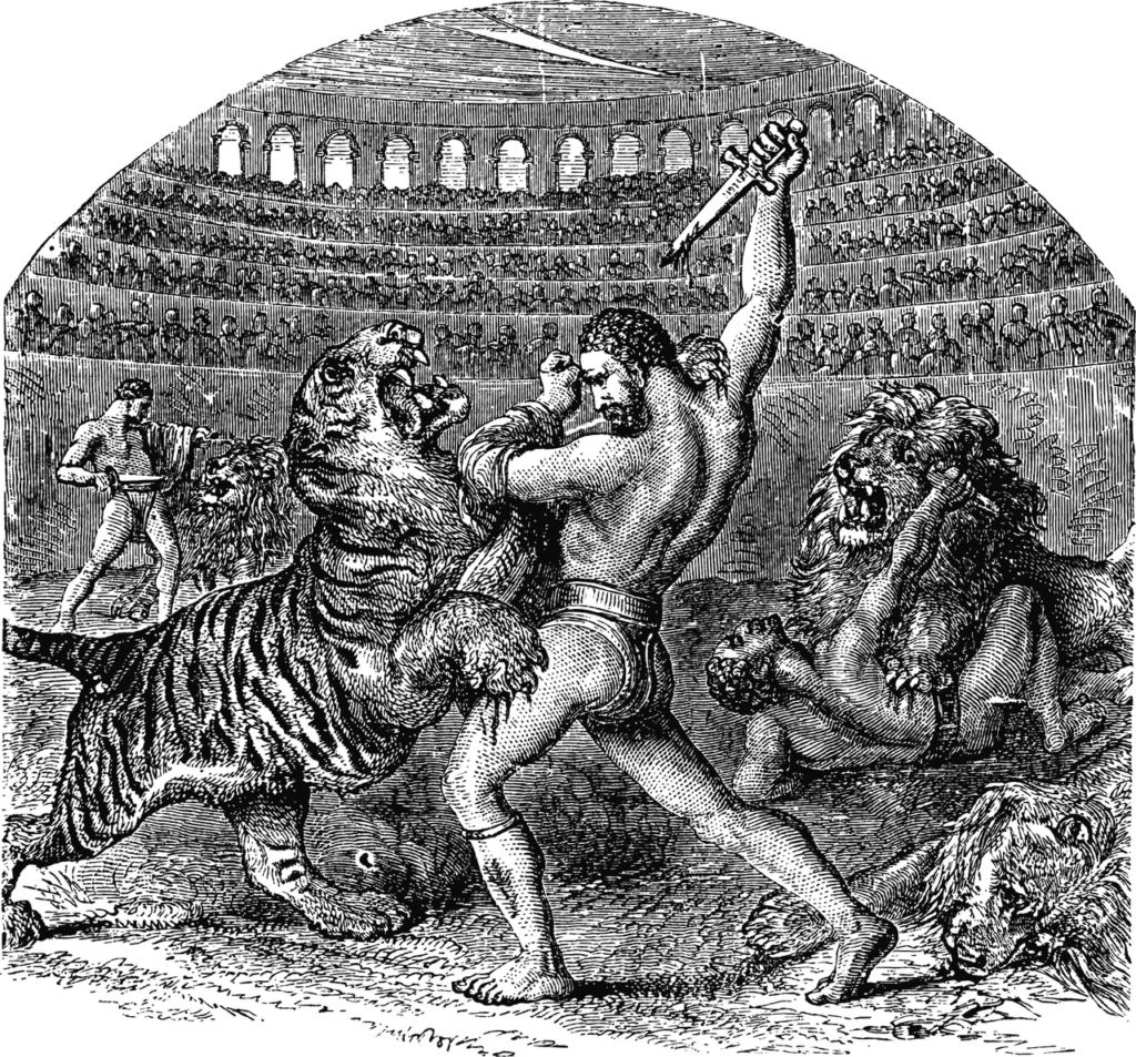 Naast mensen werden dieren ingezet om de gevechten spannender te maken. Leeuwen, tijgers, beren, olifanten en krokodillen verschenen in de arena, wat de gevechten levensgevaarlijk maakte. Sommige gladiatoren specialiseerden zich in gevechten tegen deze dieren, de zogenaamde venationes, wat extra prestige opleverde als ze overleefden.